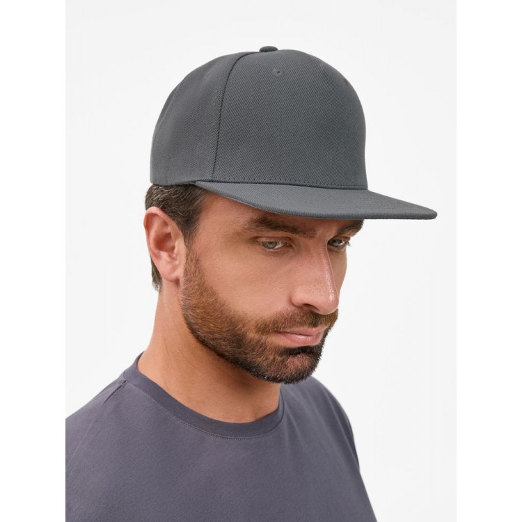 Бейсболка с прямым козырьком из плотного фактурного полиэстера отлично держит форму и не выцветает.