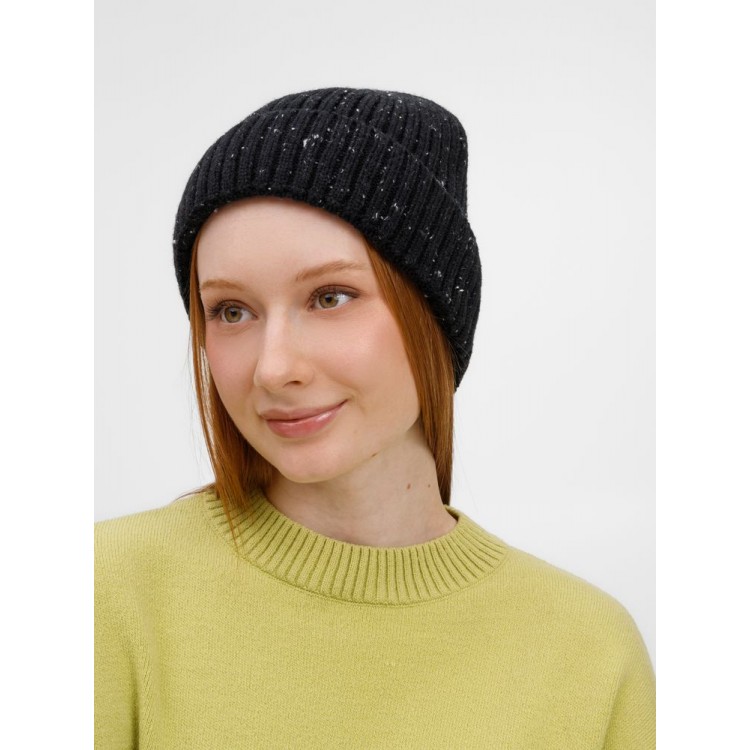 Шапка-бини с отворотом выполнена крупной резинкой из мягкой акриловой пряжи, которая создает дополнительный объем и хорошо сохраняет тепло. Благодаря оригинальному дизайну она позволит создать запоминающийся образ со стильным и лаконичным акцентом.