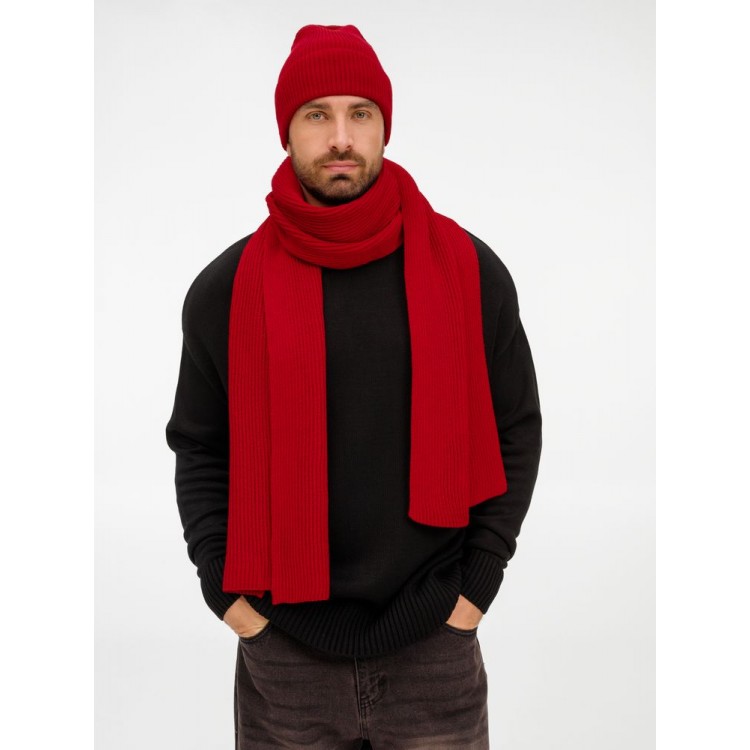 Удлиненная шапка с широким отворотом и фактурной вязкой мягко облегает голову, создавая элегантный силуэт. Широкий шарф с выразительным рельефом позволяет экспериментировать с драпировками, добавляя образу объем и динамику. Перчатки с аккуратной резинкой на манжете обеспечивают идеальную посадку и тактильный комфорт.