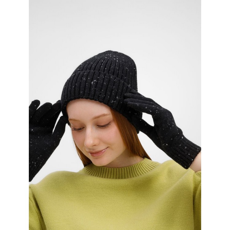 Комплект из шапки-бини и сенсорных перчаток Spotti сочетает современный дизайн с практичностью.