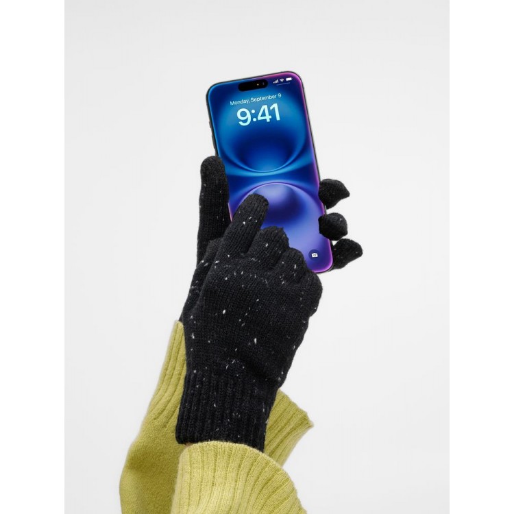 Перчатки Spotti Senso с токопроводящими волокнами на кончиках пальцев позволяют легко управлять смартфоном, не снимая их на морозе. Эргономичный крой и эластичная пряжа обеспечивают удобную посадку, сохраняя тепло и свободу движений. Как и в шапке, здесь использованы контрастные нити — визитная карточка коллекции.