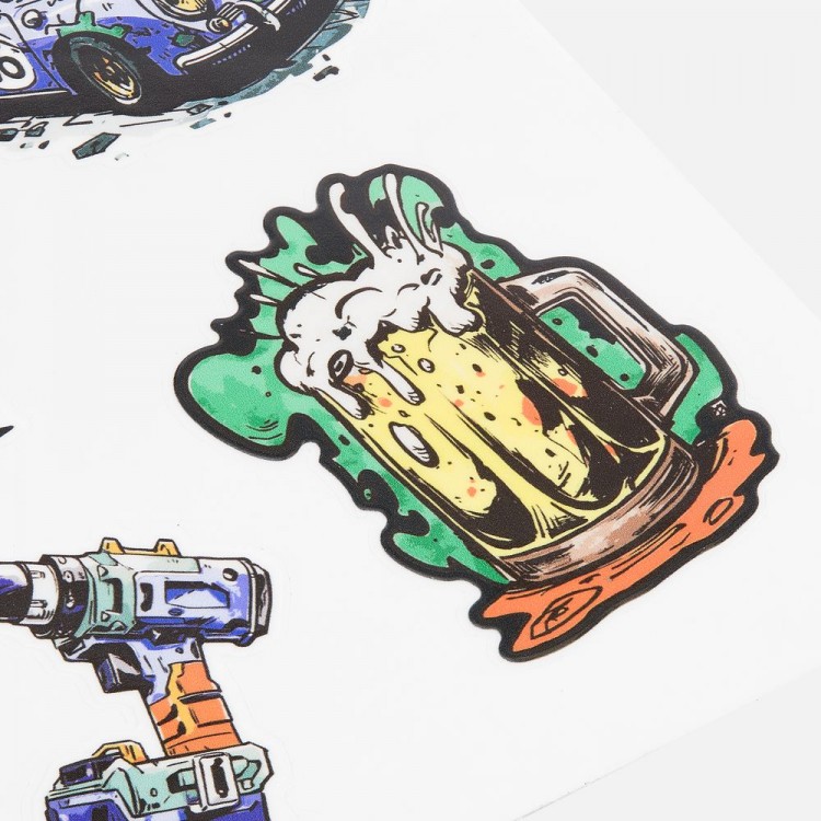 Тематические UV-DTF наклейки Thematik — яркие, красочные и слегка объемные наклейки с гладкой глянцевой поверхностью. Это удобный способ персонализировать любимые аксессуары: клеящий слой надежно удерживает наклейку на пластике, металле, керамике, коже, ПВХ, покрытии софт-тач и других поверхностях.