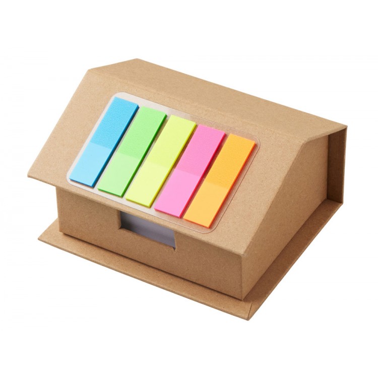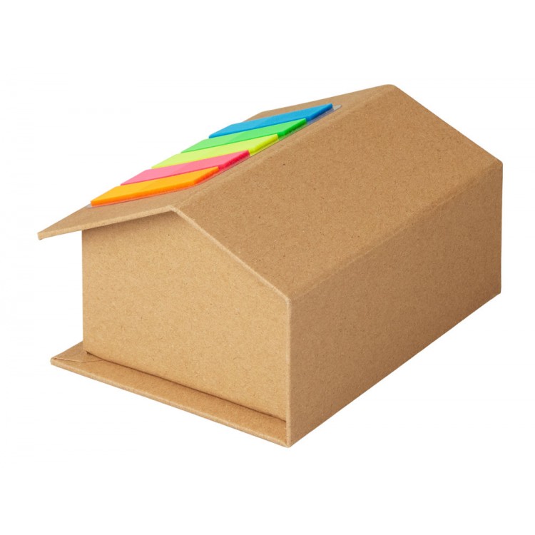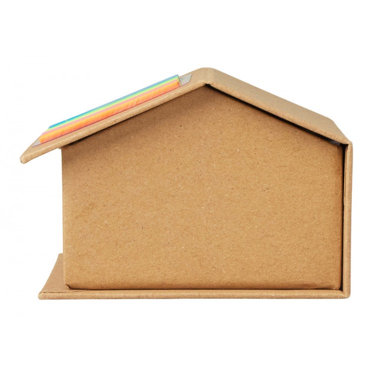 Набор стикеров и бумаг для записи в виде домика. На крыше домика расположены стикеры, 5 цветов по 25 штук каждого цвета. Внутри домика - 400 листов белой бумаги для записей плотностью 70 г/м2.
