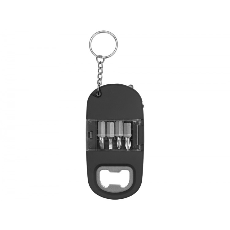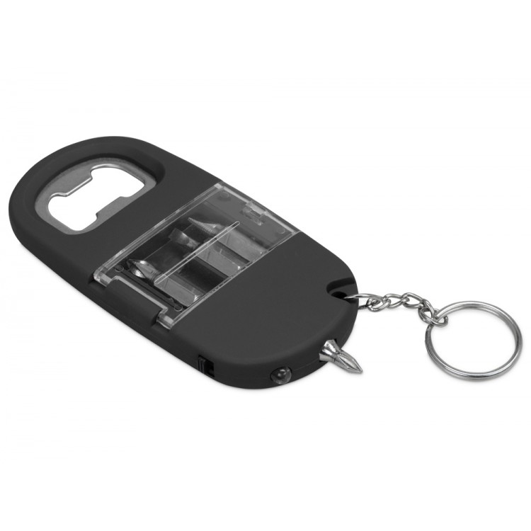 Брелок-открывалка с отвертками и фонариком Uni, софт-тач, черный (Р)