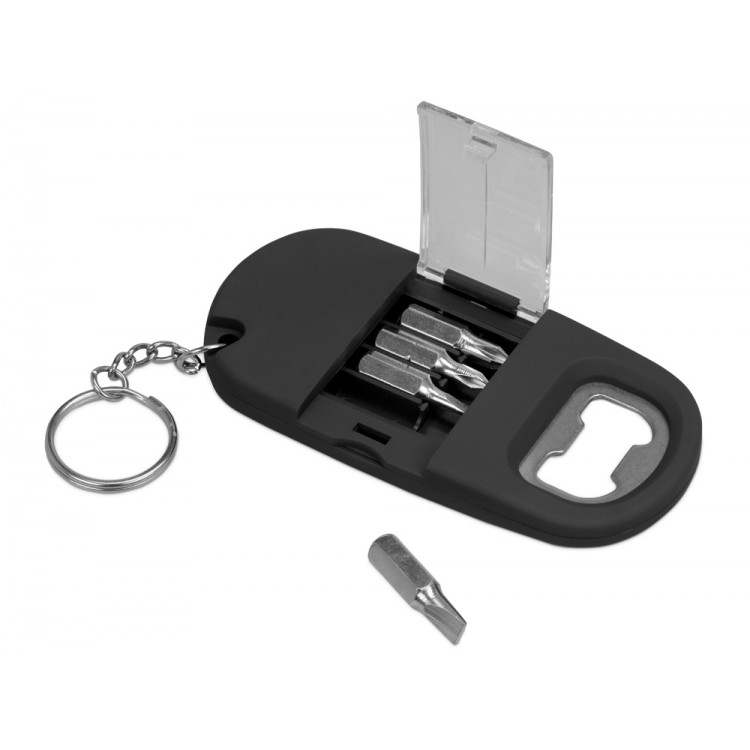 - Код товара: Брелок-открывалка с отвертками и фонариком Uni, софт-тач, черный