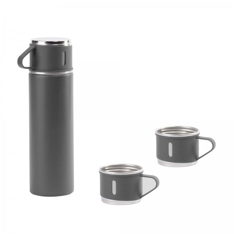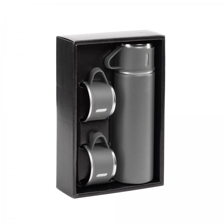 Набор подарочный "Алтай": термос, 3 кружки, покрытие пудра, серый
