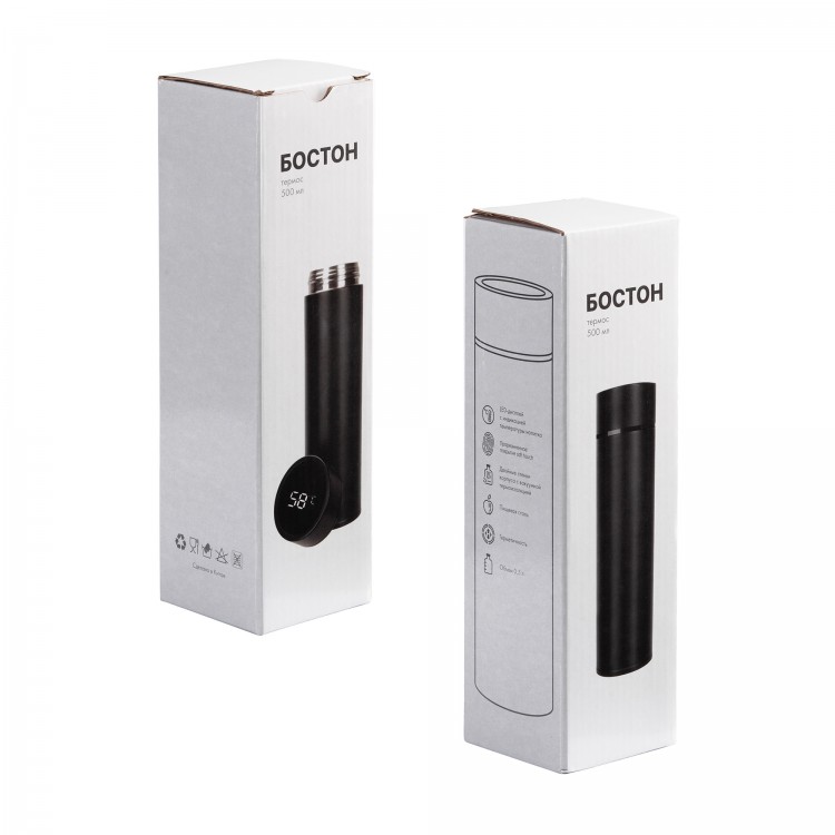Термос "Бостон next" 500 мл с индикацией температуры, soft touch, сменная батарейка, черный