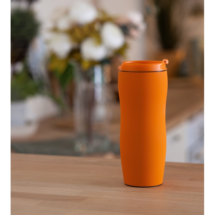 Термостакан "Монтана", покрытие soft touch, 0,4 л., черный, оранжевый