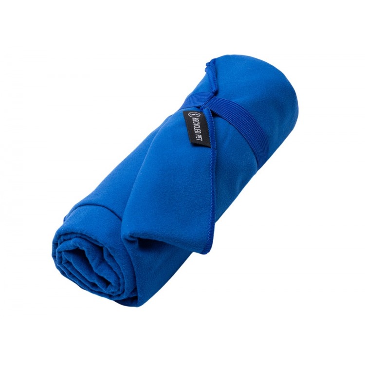 Легкое полотенце из микрофибры, изготовленное из переработанного ПЭТ, с ремешком для складывания и удобной транспортировки.