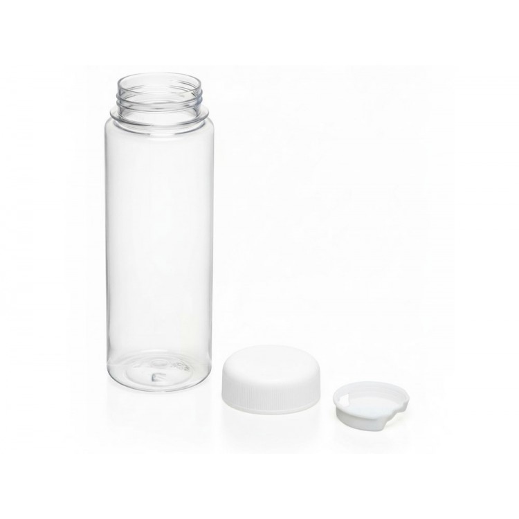 Лаконичный внешний вид позволяет нанести на аксессуар логотип компании. Прозрачный корпус дает возможность контролировать количество содержимого. Благодаря съемному фильтру в воду можно добавлять лимон, мяту и фрукты. Силиконовое кольцо предотвращает протекание, а крышка надежно закрывает бутылку.