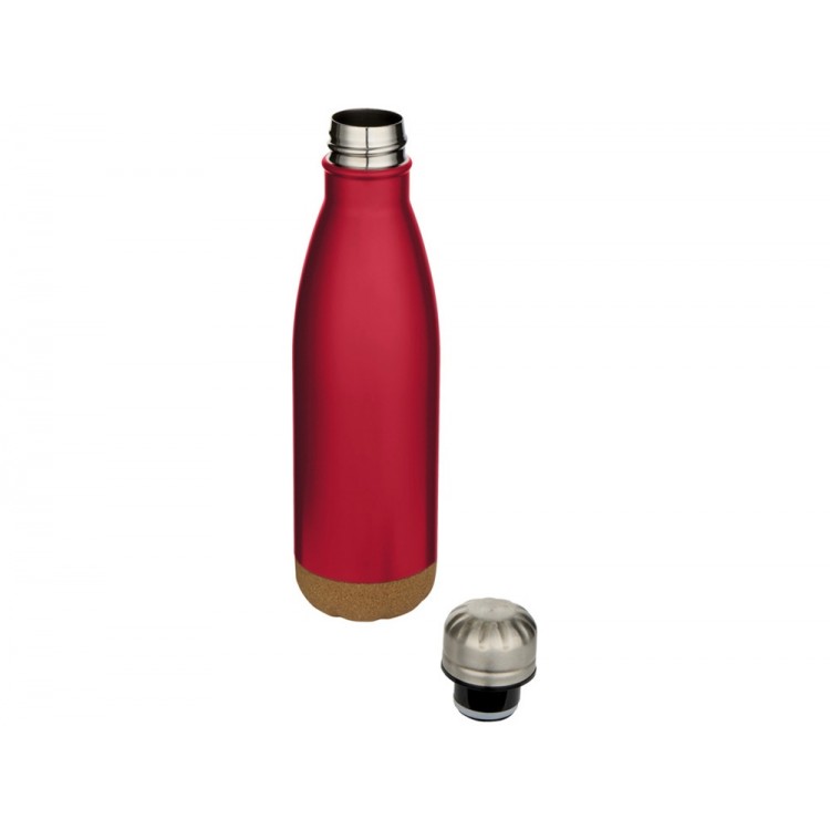 Бутылка для воды Cove из нержавеющей стали с двойными стенками и вакуумной изоляцией, объемом 500 мл, с пробковыми деталями - Красный