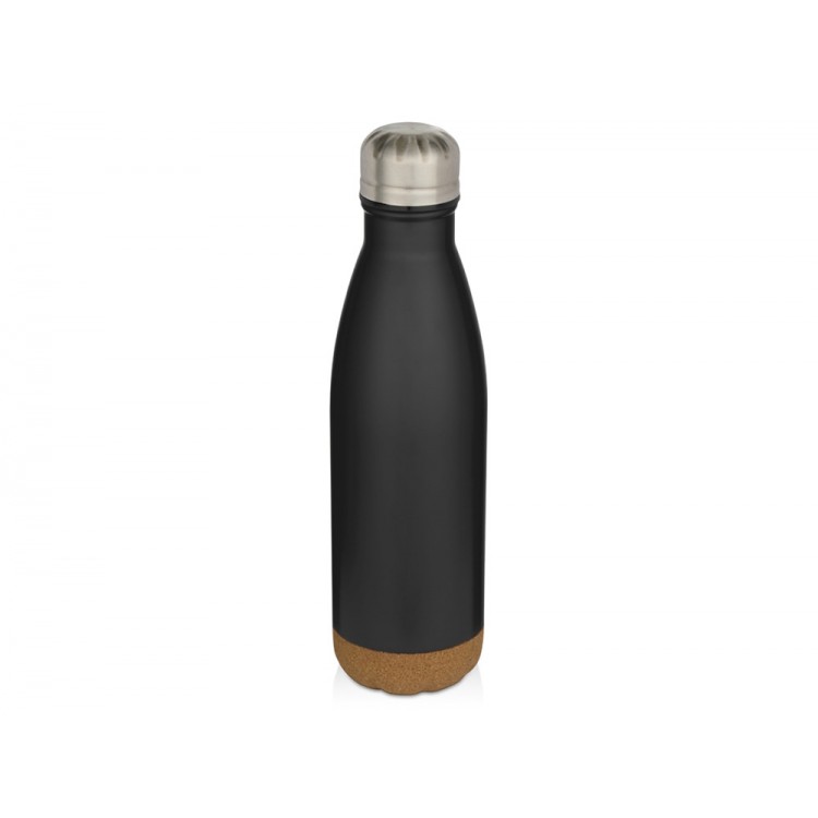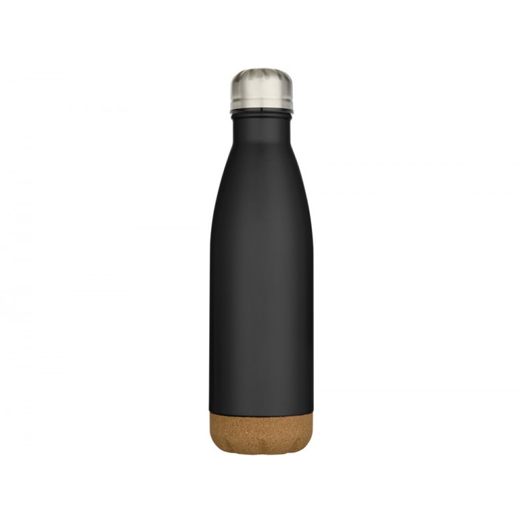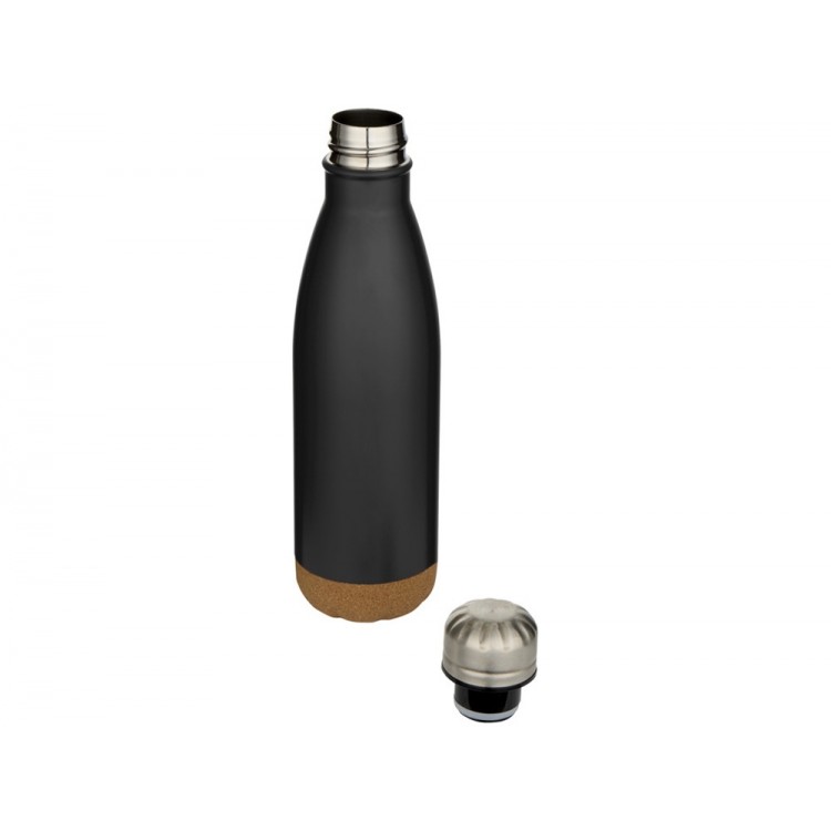 Бутылка для воды Cove из нержавеющей стали с двойными стенками и вакуумной изоляцией, объемом 500 мл, с пробковыми деталями - сплошной черный