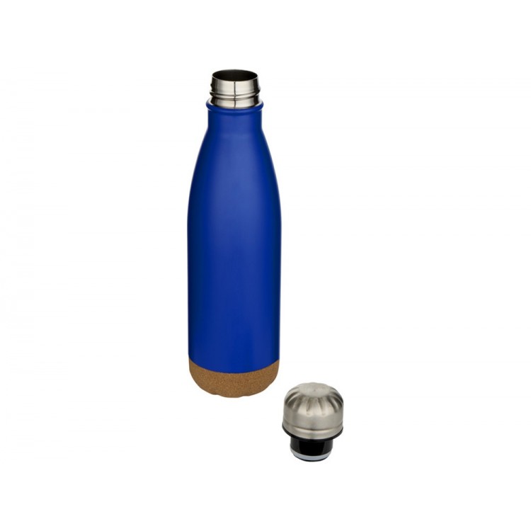 Бутылка для воды Cove из нержавеющей стали с двойными стенками и вакуумной изоляцией, объемом 500 мл, с пробковыми деталями - Ярко-синий