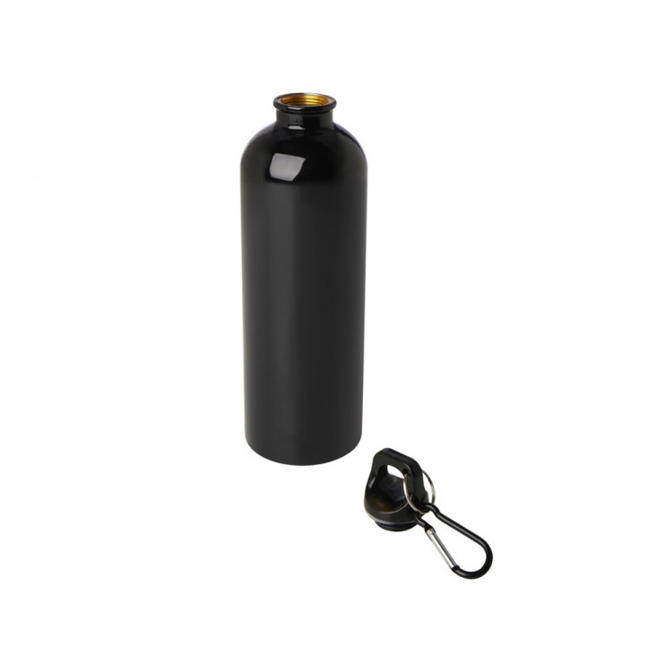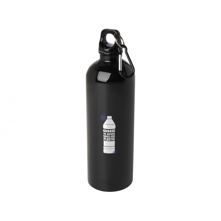 Одностенная бутылка для воды с карабином Oregon, изготовленная из нержавеющей стали, сертифицированной по стандарту RCS, объемом 750 мл - сплошной черный