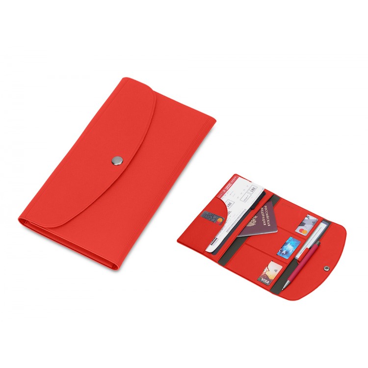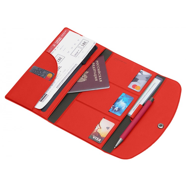 Органайзер для документов на кнопке с отделением для купюр и ручки, упаковка в индивидуальный пакет, красный/серый