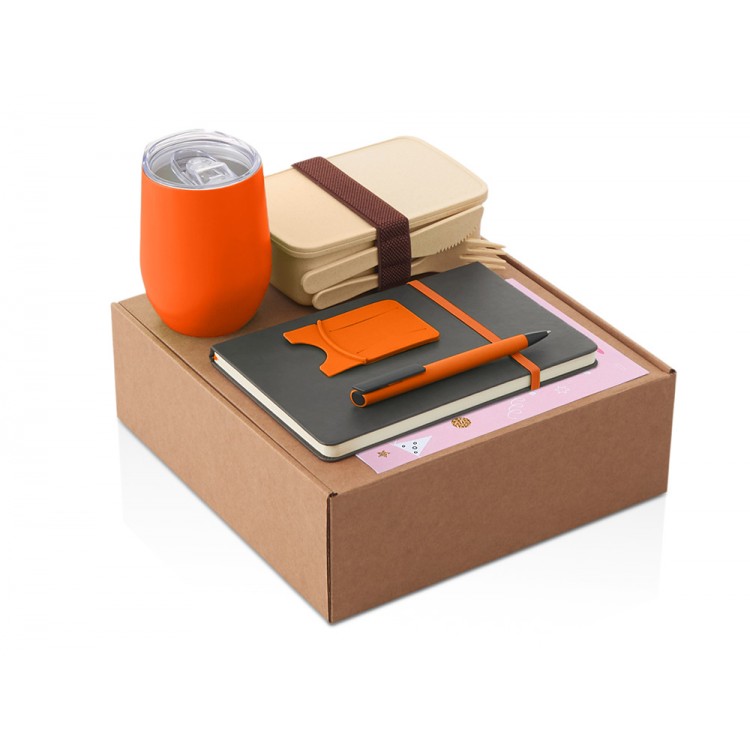 Набор с термокружкой, блокнотом, ручкой и ланчбоксом Refreshment, оранжевый