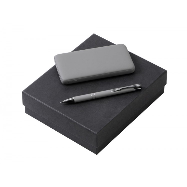Подарочный набор c ручкой и повербанком 10000 mAh, серый