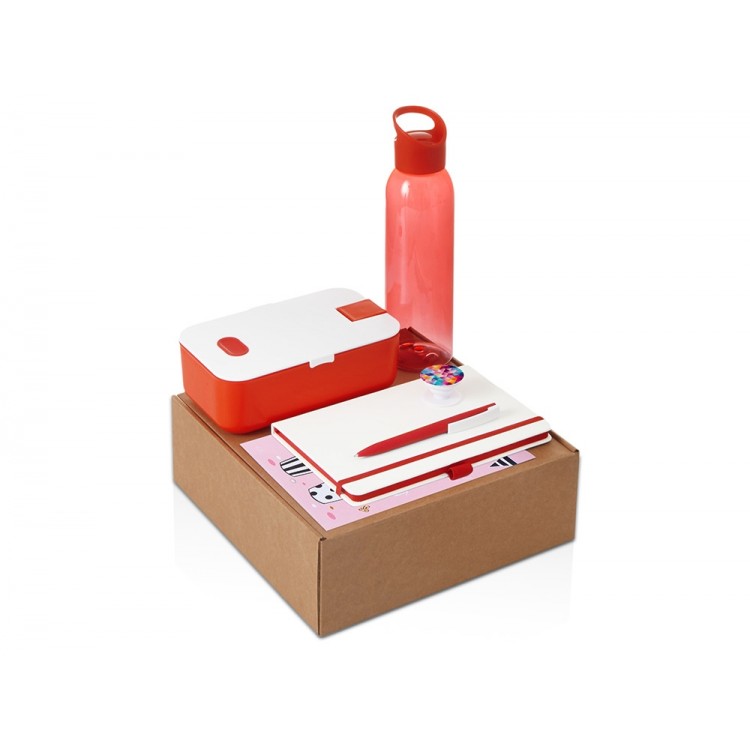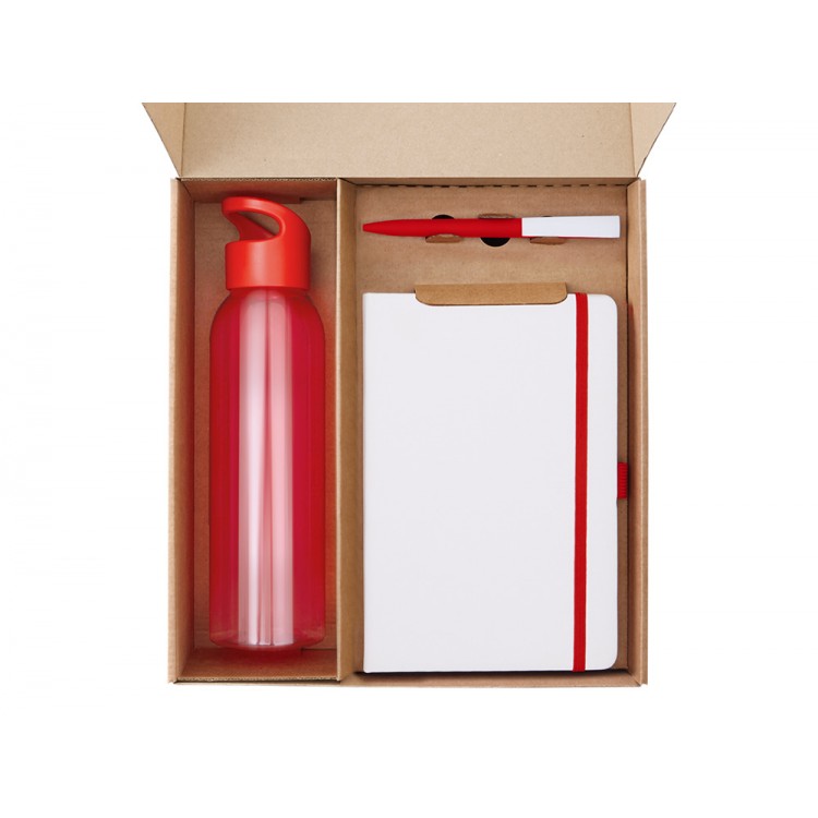 Подарочный набор с бутылкой для воды. блокнотом, ручкой и ланчбоксом, красный