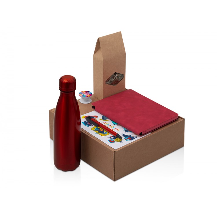 - Код товара: Подарочный набор с термобутылкой, блокнотом, ручкой и чаем, крас