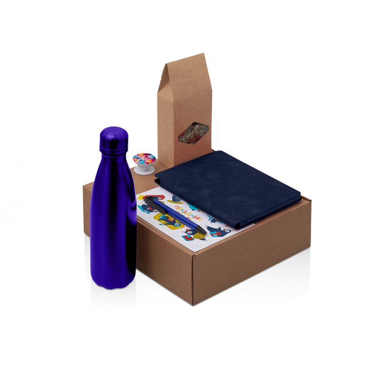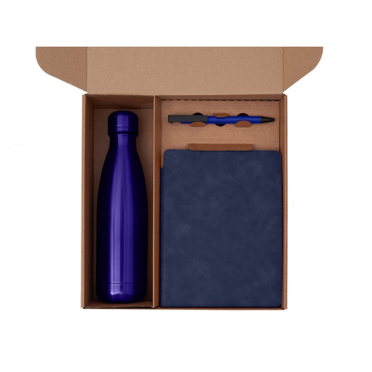 - Код товара: Подарочный набор с термобутылкой, блокнотом, ручкой и чаем, сини