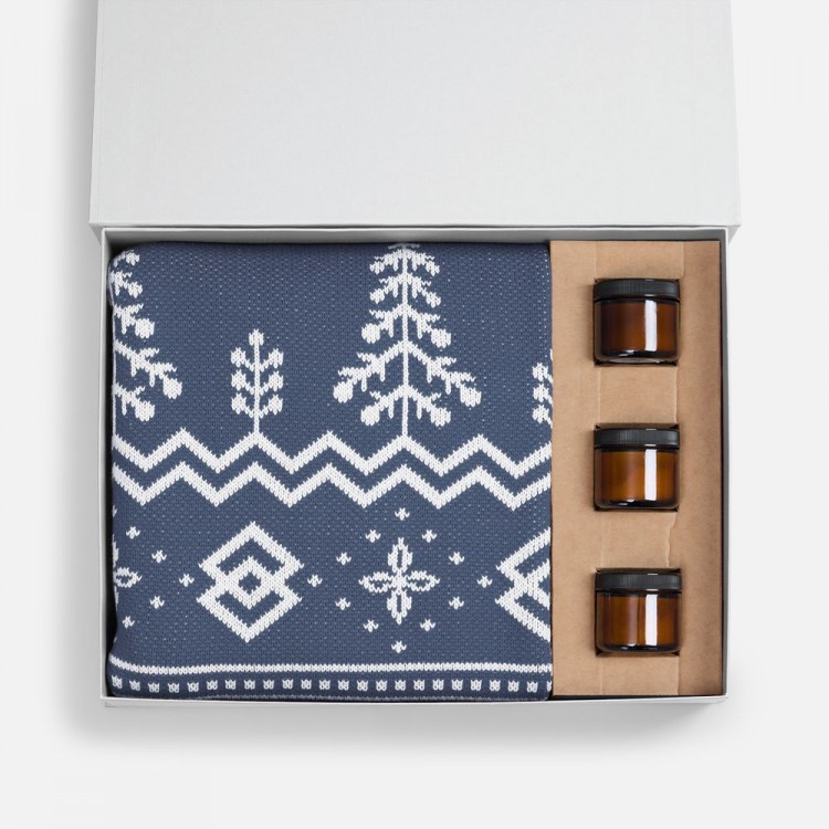 Идеальный зимний подарок для ваших партнёров и клиентов. Этот набор — дань уютным традициям и современному стилю. Мягкий плед с аутентичными зимними узорами и три изысканных аромасвечи дарят атмосферу тепла, праздника и беззаботности.