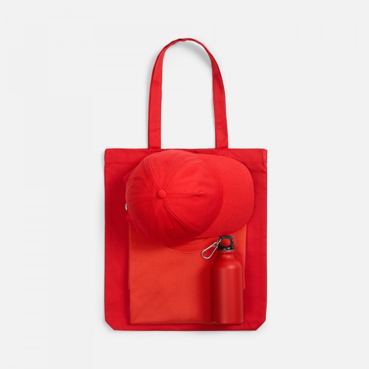Оттенки футболок и бейсболок здесь сочетаются идеально. Можно с удобством собрать летние сеты в необходимом корпоративном цвете или с легкостью разделить команды по цветам. Бутылка для воды — незаменимая вещь в летний сезон. А шопер, пожалуй, самый практичный вариант упаковки, которым также еще неоднократно воспользуются в дальнейшем.