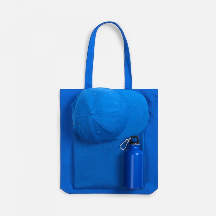 футболка - хлопок 100%, плотность 140 г/м²; джерси; бейсболка - полиэстер, 75%; хлопок, 25%, плотность 170 г/м²; джерси; бутылка - алюминий; крышка - пластик; сумка - хлопок 100%, плотность 220 г/м²; саржа