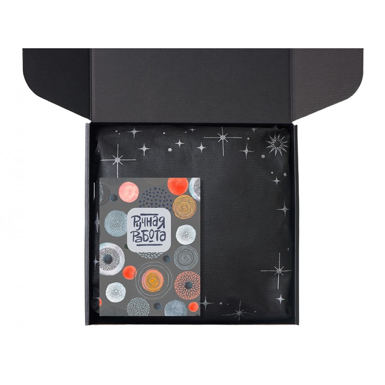 диффузор - стекло, кофе в дрип пакете - пластик, кружка - костяной фарфор, попкорн - пластик, металл, мешок - нетканый материал (спанбонд), коробка - картон