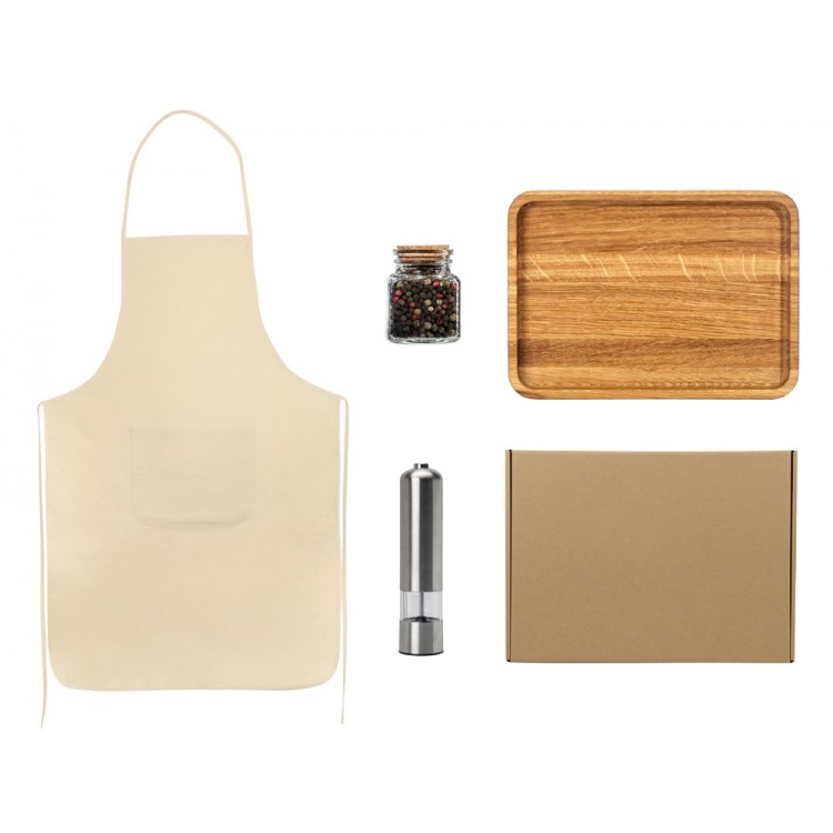 - Код товара: Подарочный набор для кухни с фартуком, подносом, мельницей и спе