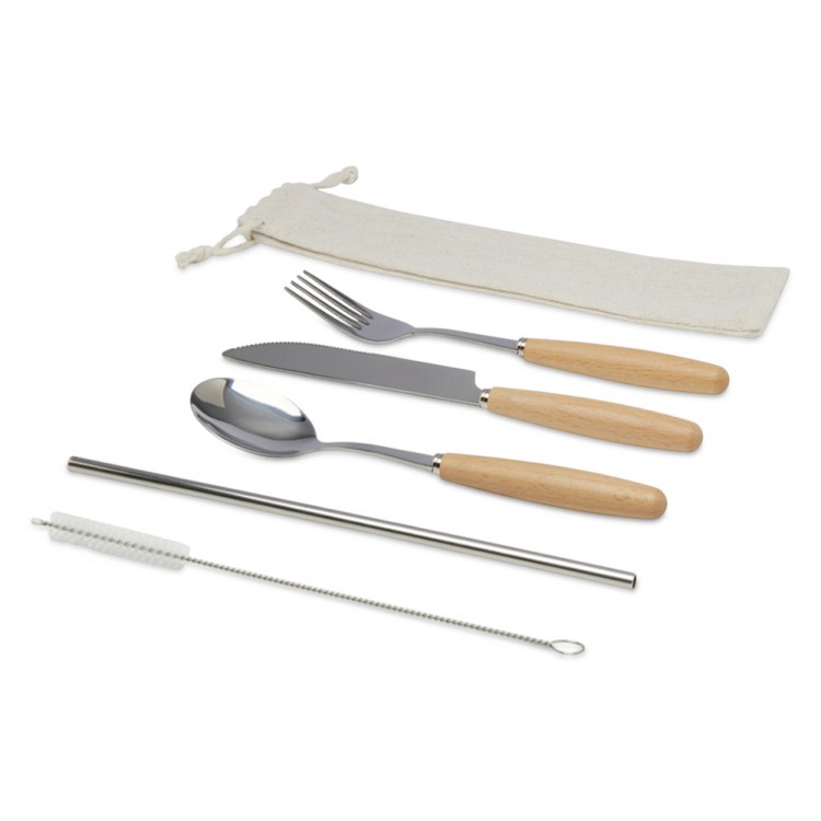 Набор столовых приборов Root — это стильное и практичное решение для тех, кто ценит удобство и экологичность. В комплект входят вилка, нож, ложка, многоразовая соломинка и щеточка для её чистки. Рабочая часть выполнена из прочной нержавеющей стали, а деревянные ручки из бука придают приборам естественный шарм и комфорт в использовании. Всё это аккуратно упаковано в компактный хлопковый мешочек — удобно брать с собой на пикник, в поездку или на работу.