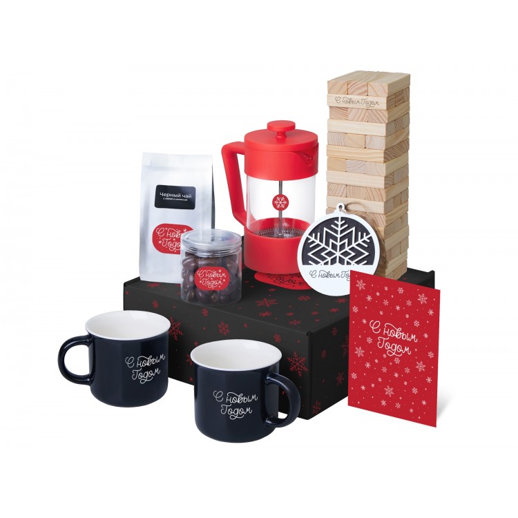 - Код товара: Подарочный набор c френчпрессом, кружками и чаем, красный