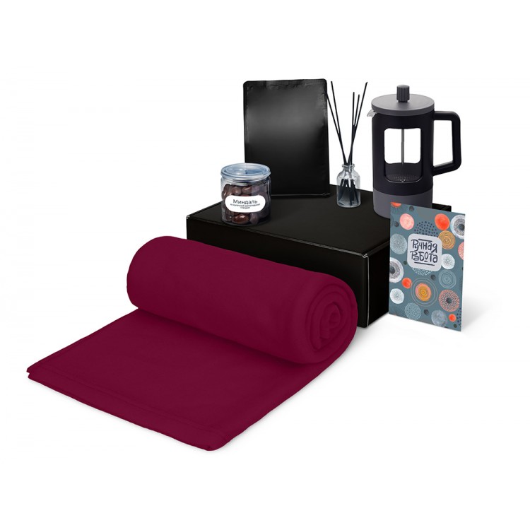 плед - флис, полиэстер, кофе - пластик, френч-пресс - нержавеющая сталь, боросиликатное стекло, ПП пластик, диффузор - стекло, миндаль - пластик, мешок - нетканый материал (спанбонд), коробка - картон