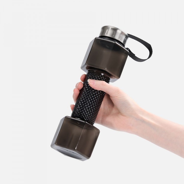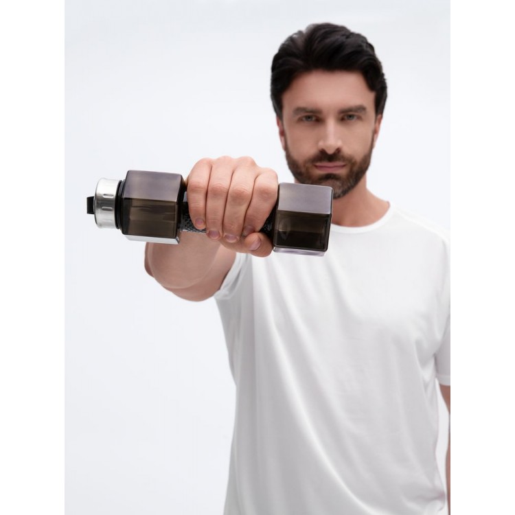 Стильная и функциональная бутылка Hantelis — превосходный выбор для спортсменов и всех, кто придерживается активного образа жизни. Благодаря прочному корпусу и эстетичному дизайну она отлично подходит как для интенсивных тренировок в зале, так и для легких занятий на свежем воздухе. С ней легко поддерживать водный баланс в течение всего дня. Главная особенность модели — уникальный дизайн в виде гантели. Наполненная водой бутылка превращается в полноценный спортивный снаряд, позволяя проводить легкую разминку или полноценную тренировку в любом месте и в любое время!Узкая средняя часть обеспечивает удобный и надежный хват. Крышка с уплотнительным кольцом надежно защищает от протекания. Прочный ремешок фиксирует крышку, не давая ей потеряться. Полупрозрачный корпус выполнен из качественного пищевого пластика, который полностью безопасен для здоровья.