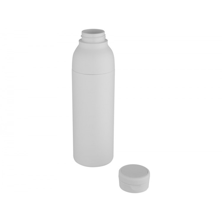 Бутылка для воды с двойными стенками, вакуумной изоляцией, из нержавеющей стали сертифицированной согласно RCS, с незаметной встроенной в крышку силиконовой ручкой. Двухкомпонентная конструкция облегчает простую очистку, а прочное порошковое покрытие и медное покрытие гарантируют долговечность. Поставляется в подарочной коробке из переработанного картона. Объем: 650 мл. 80% Нержавеющая сталь из переработки, сертифицированная RCS, 10% Пластик PP, 10% Силиконовый Пластик. упаковка FSC Mix Credit P5.1 CU-COC-877277.