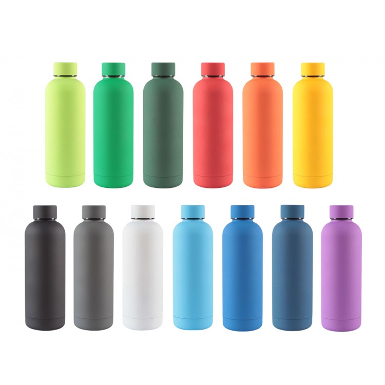 Термобутылка из нержавеющей стали с soft-touch покрытием, двойной корпус с вакуумной изоляцией и вместимостью до 550 мл.
