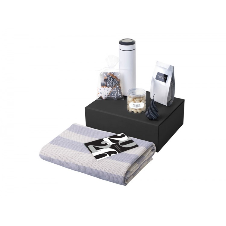 - Код товара: Подарочный набор c пледом, термосом, свечой и миндалем, белый