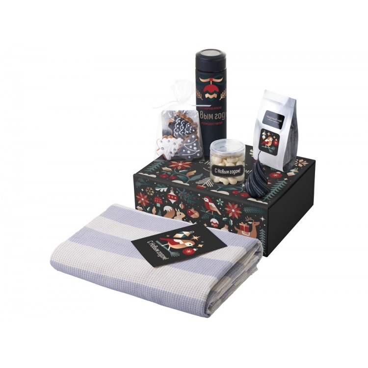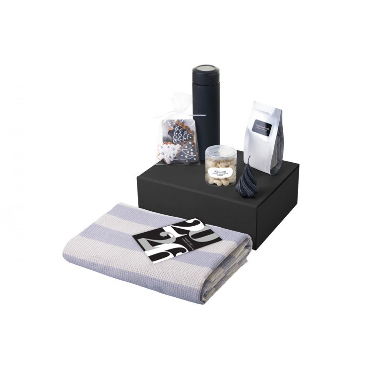 - Код товара: Подарочный набор c пледом, термосом, свечой и миндалем, черный