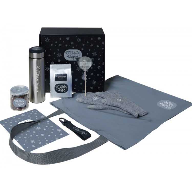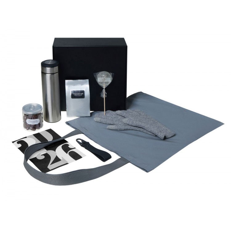 - Код товара: Подарочный набор с перчатками, термосом и чаем, серый