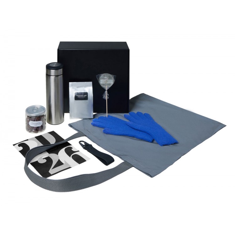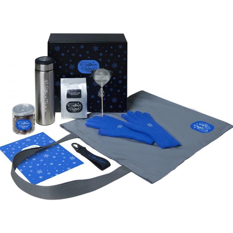 - Код товара: Подарочный набор с перчатками, термосом и чаем, синий