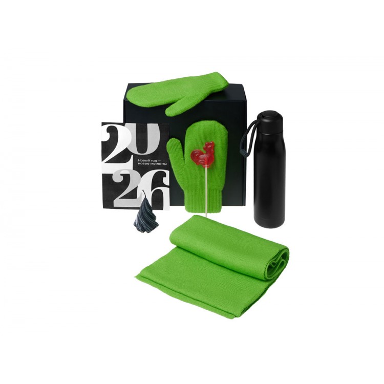 Подарочный набор с варежками, шарфом и термосом, зеленое яблоко