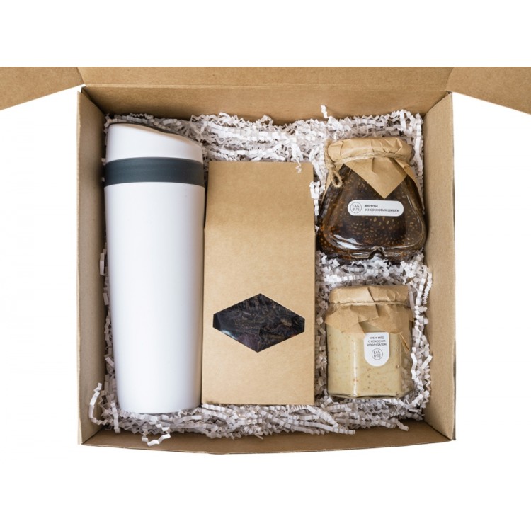 Этот набор создан, чтобы дарить уют и хорошее настроение. Завари любимый чай, добавь ложечку ароматного мёда или ложку варенья — и наслаждайся теплом, которое согревает не только руки, но и душу. Термокружка сохранит напиток горячим, где бы ты ни был. Прекрасный подарок для уютных вечеров и душевных моментов.