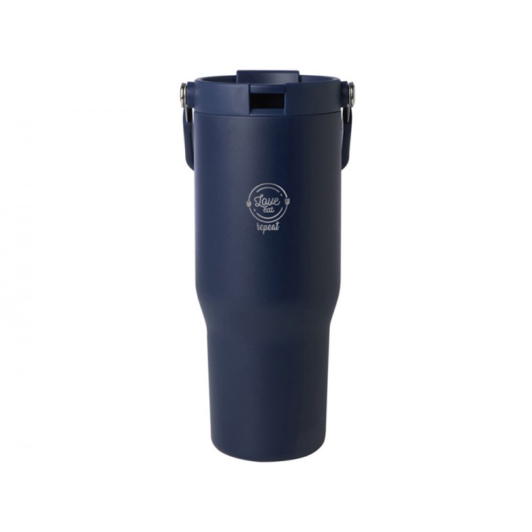 Термостакан Bronx объемом 900 мл из меди и переработанной нержавеющей стали, сертифицированной по стандарту RCS, с вакуумной изоляцией и крышкой с двойной функцией - Темно - синий