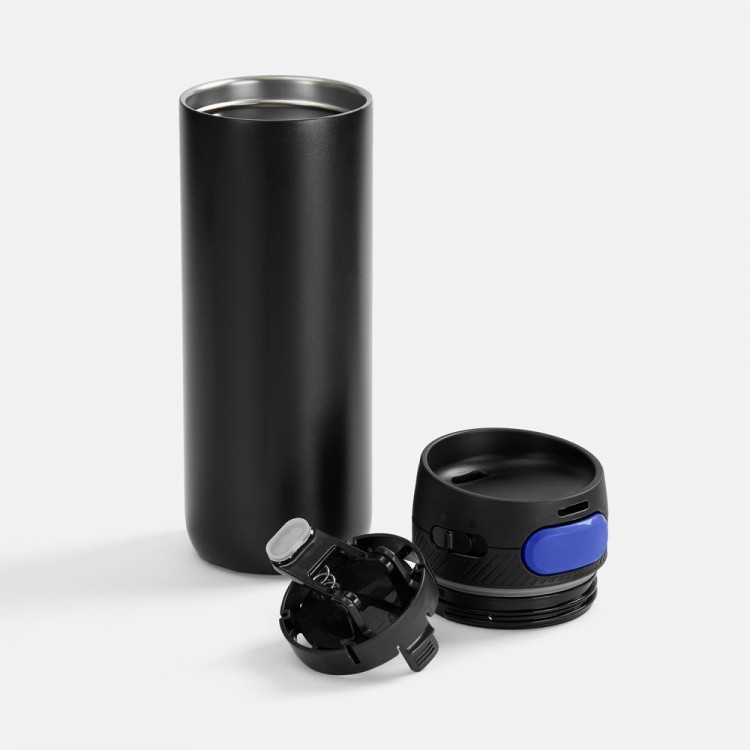 Термостакан X1 с цветной кнопкой, черный с синим