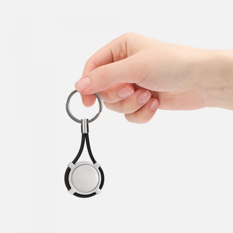 Элегантный круглый металлический брелок с декором из силикона.