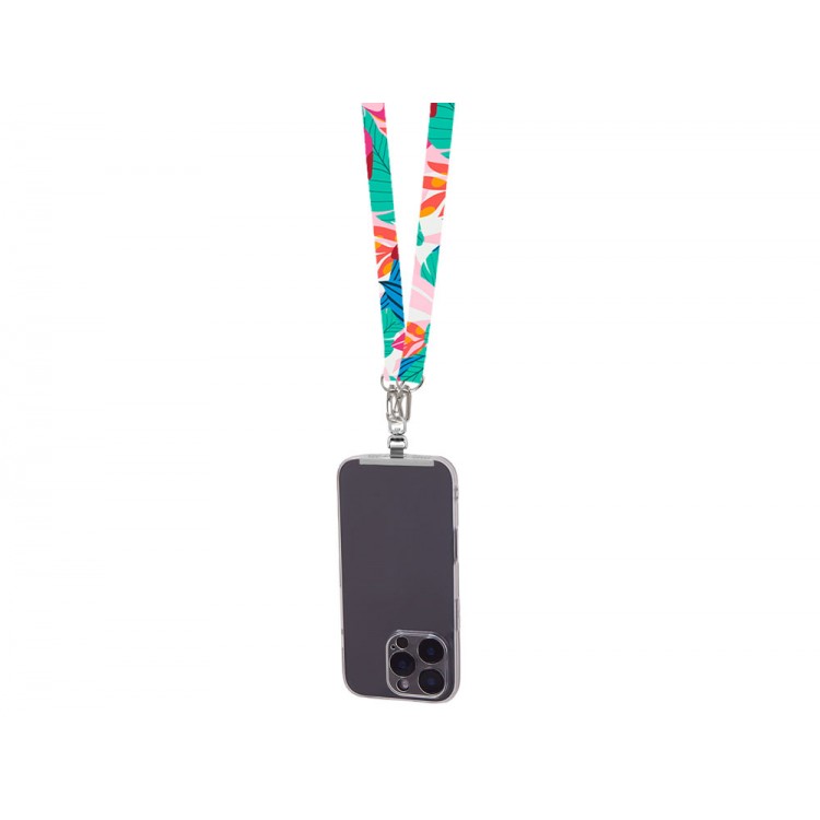 Ланъярд 2 см под сублимацию с 2-мя трендовыми карабинами и металлическим держателем для телефона, серебристый
