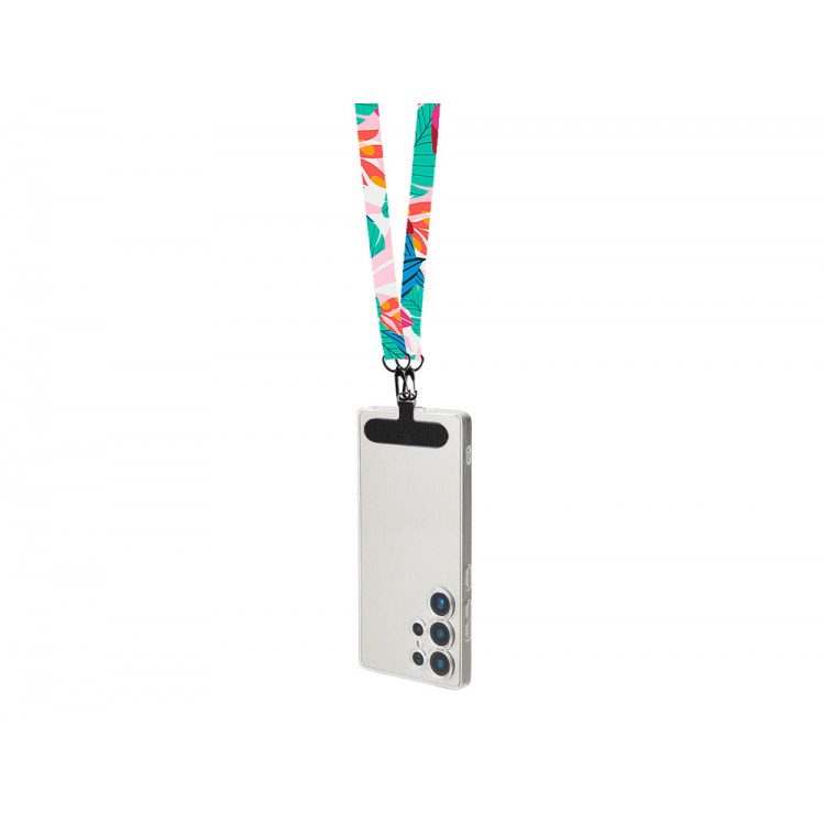 Ланъярд 2 см под сублимацию с 2-мя трендовыми карабинами и узким держателем для телефона из ПЭ, черный