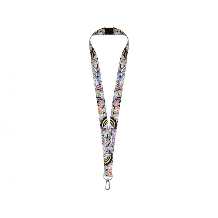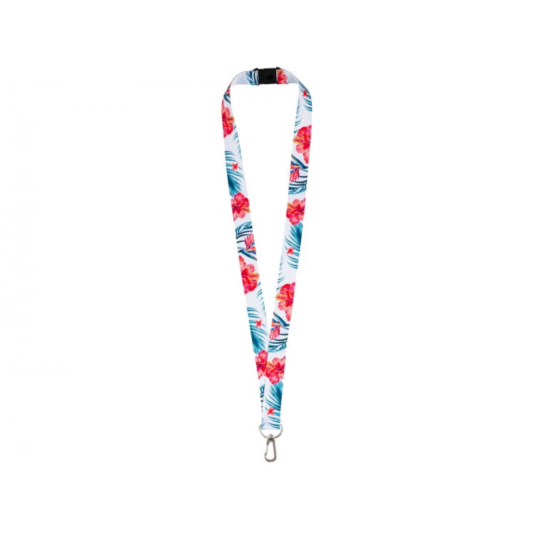 Ланъярд 2 см под сублимацию с карабином и замком обрыва, серебристый