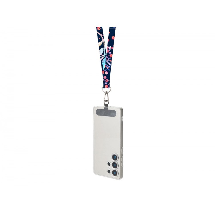Ланъярд 2 см под сублимацию с трендовым карабином и узким держателем для телефона из ПЭ, серебристый