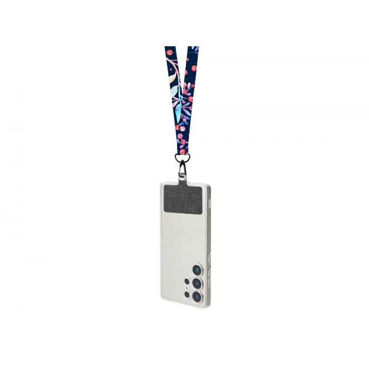 Ланъярд 2 см под сублимацию с трендовым карабином, замком обрыва и большим держателем для телефона из ПЭ, черный