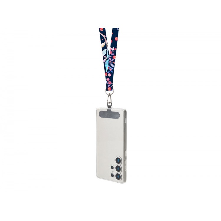 Ланъярд 2 см под сублимацию с трендовым карабином, замком обрыва и узким держателем для телефона из ПЭ, серебристый